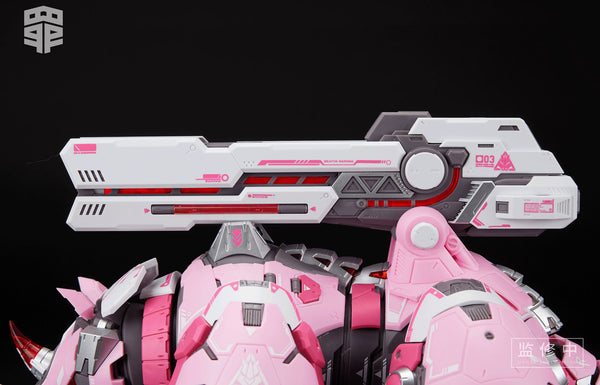 The mechanical bear is made in pink and white with golden touches, making him very cute, even though he's plainly very powerful and loaded with armaments! The pink-and-white Mecha Rhino is also a force to be reckoned with, with back-mounted weapons and a mighty build that's perfect for both defense and offense!