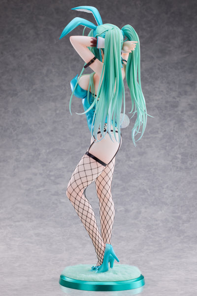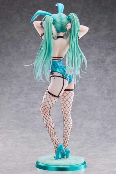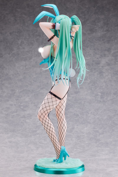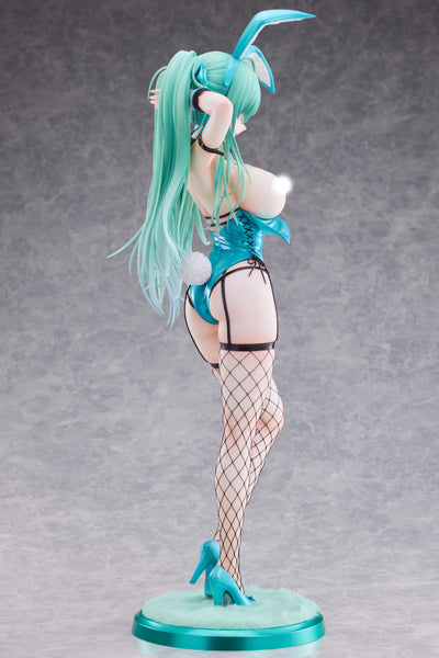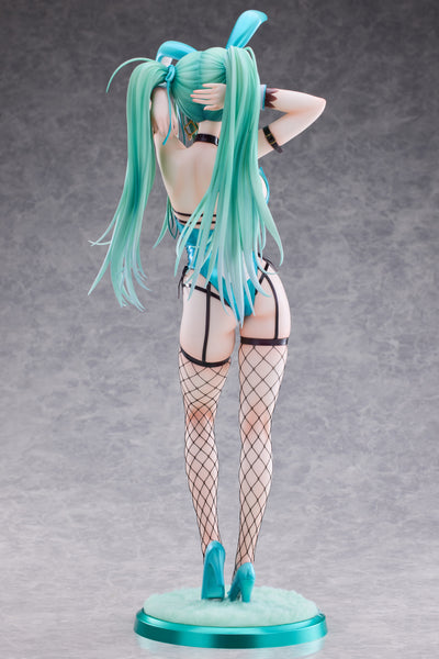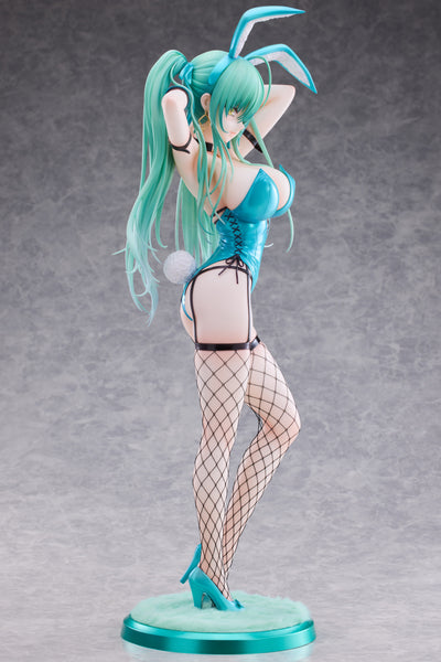 Say hello to Green Twin Tail Bunny-chan -- she's the newest 1/4-scale figure from PartyLook! She's based on an illustration by the popular artist Sakiyamama, and her uniquely designed bunny suit shows off her curves in the best way possible! Interchangeable parts are included to show her off with less coverage, too. This version wears wide-gauge fishnet stockings for an extra sexy appearance! As a special bonus, a full-color pinup and a wall tapestry of the original illustration that inspired this figure is included; a base is provided too. You'll love her -- order her for your own private collection today!