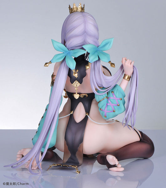 The Selfish Princess kneels before you, blushing more than a little bit; she might be mortified by the brief outfit she wears! You'll love her golden crown and ornaments, her long lavender hair, and the slightly shy way she holds one of her ponytails in her right hand. Parts of her outfit are removable so she can be displayed with less coverage, and she's a big 1/5-scale, too, to make a major impression! Order her for your own private collection today!