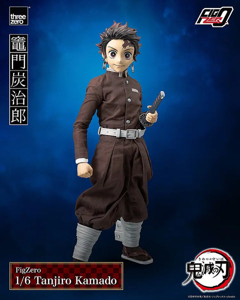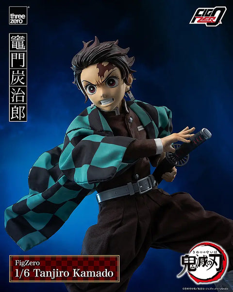Tanjiro Kamado from the popular TV anime "Demon Slayer:Kimetsu no Yaiba" returns to Three Zero's "FigZero" 1/6-scale action-figure lineup! He has about 37 points of articulation for maximum posability;he comes with his complete Demon Slayer Corps uniform, with bendable metal wire embedded in the hem of the haori for dramatic windblown poses! Three interchangeable faces and six pairs of interchangeable hands are also included. He's armed with his Nichirin sword (made of metal) and a small knife, and a wooden box (made of plastic) is included too. A Water Breathing effect part that can be attached to the Nichirin sword is also included to create the illusion of Tanjiro's dynamic swordplay, and a Water Breathing effect part equipped with a magnet is also included that can be attached to the serious facial expression's mouth! Order him for your own collection today!
