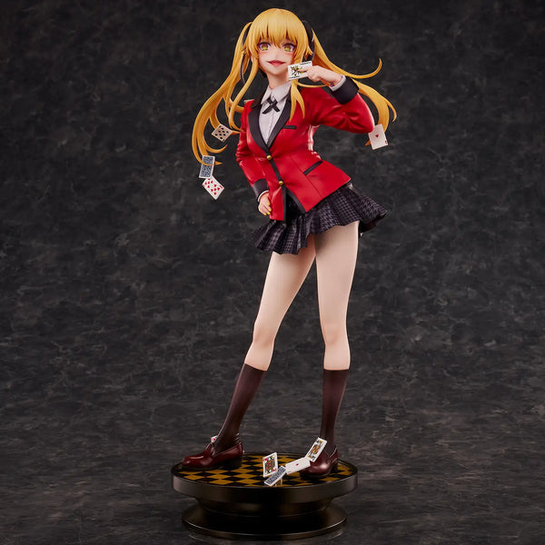 Mary Saotome from "Kakegurui" is now a 1/6-scale figure from Union Creative! She has a confident, condescending smile on her face, as if she's certain of victory;her provocative expression and pose perfectly capture her assertive personality. The cards flying through the air evoke her passion for the game and the tension of the negotiations, creating a sense of realism that captures a moment of gambling. The base depicts cards falling, with a glossy frame combining with a matte top for a luxurious feel. Order her for your own collection today!