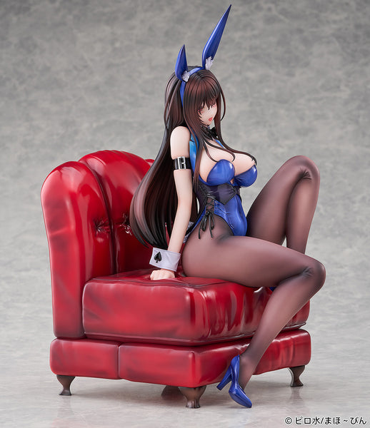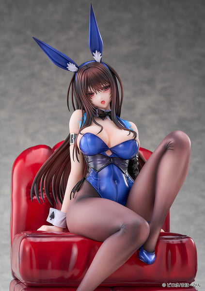 Hanabee brings us a 1/6-scale figure of the original character Kasane Mizusami, drawn by the popular illustrator Piromizu in a bunny girl outfit! Seated in an overstuffed red chair, she seems a bit uncomfortable in the cute blue bunny suit, pulling up one leg and sitting with her hands in fists; her expression makes it plain that she's not happy! It must be said that she looks great, though! The chair is of course included, as is a shikishi of the original illustration that inspired this figure! Order her for your own collection today!