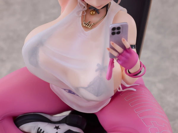 WildMelody brings us a 1/6-scale figure of "Kyou wa Mune Tore!", as illustrated by RST! Evidently pleased with the results of her workout, this young woman poses for a selfie on a weight bench, wearing heart-stopping black lace lingerie! You'll love being able to view and appreciate her from any angle you choose! An interchangeable lower body part is included so you can display her in pink leggings. As a bonus, a can badge and a card with a changing image on it are included too. Order her for your own collection today!