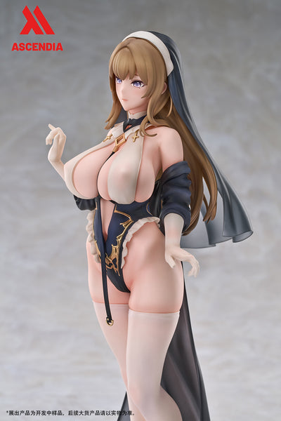 Lily Nun, an original character created by the popular illustrator Chowbie, is now a 1/6-scale figure from Ascendia! Lily's uniquely designed outfit shows off her healthy curves to their best advantage; the golden ornamentation on the bodice gives the outfit a touch of elegance. Her base is included. Order her for your own collection today!