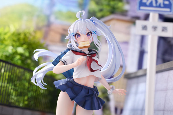 Bibi Buttons introduces us to Mirai-chan! She's so close to being late for school -- she dashes out the door with a slice of toast in her mouth and an anxious expression on her lovely face! Her pale lavender hair swirls wildly behind her as she runs full-tilt for school, hoping against hope that she won't get in trouble! This deluxe edition comes with a bonus PVC bookmark and a wall tapestry of the original illustration that inspired this figure! Order her for your own collection today!