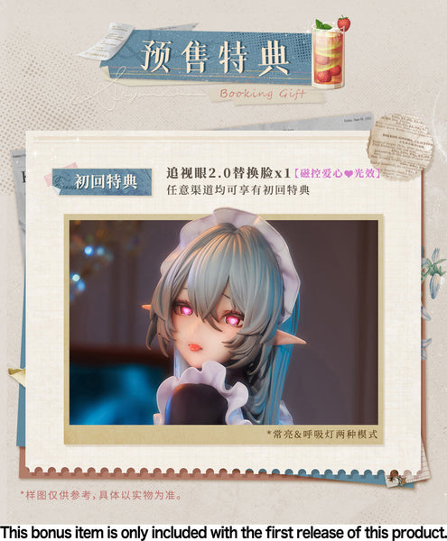 Nozomi, known as "the mischievous maid who tends to slack off," is now a gorgeous 1/6-scale figure from AniMester! She's posing by an elegant chair, letting one high-heeled shoe dangle provocatively off the toes of one foot, while looking at you over her shoulder and sticking her tongue out just a little! A special bonus item will be included with the first batch of this figure: an interchangeable face with eyes that light up! (This item is only included with the first batch of this figure; if yours does not include it, it was not part of the first batch.) Order this saucy maid for your own collection today!