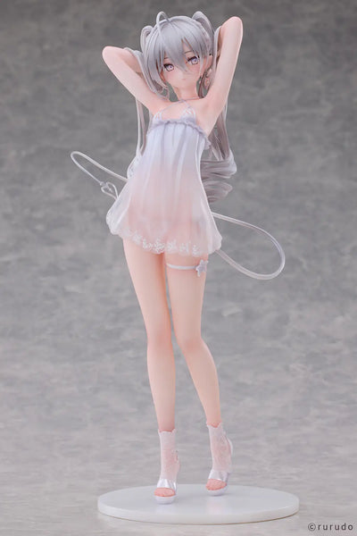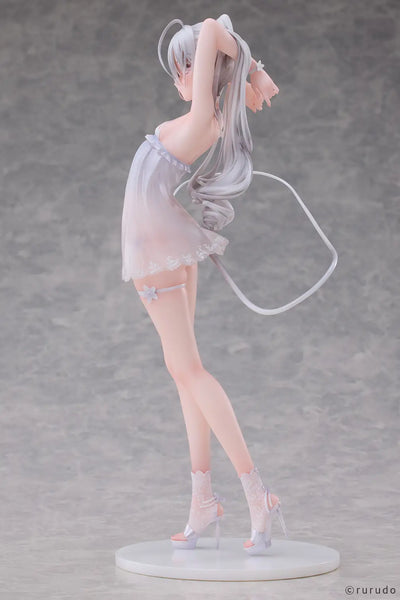Sugar is an original character drawn by the popular illustrator rurodo -- and now she can join your figure collection thanks to Creosis! Her lightweight negligee is stirred slightly by a gentle evening breeze, and her flowing silvery-gray hair falls into spirals at the ends of her twin tails. Speaking of tail, what's that emerging from under her skirt in back-? Her elegant high heels give her a graceful presence;her base is included too. As a special bonus, you'll also receive a mini reproduction of the original illustration that inspired this figure, autographed by rurudo! Order Sugar for your own collection today!