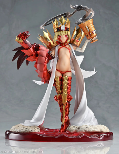 The Beast servant Sodom's Beast/Draco from the popular smartphone game "Fate/Grand Order" is now a figure from Medicos! Based on the visuals by character designer and illustrator Wada Arco, this figure has been faithfully recreated down to the intricate details of her bold outfit, undulating dragon-like tail, and distinctive hairstyle. The textured paintwork emphasizes the contrast between her heavy, metallic armor and girlish bodyline; the ominous design of the base and the chalice filled with a vile black substance accentuates her splendor. Order her for your own collection today!