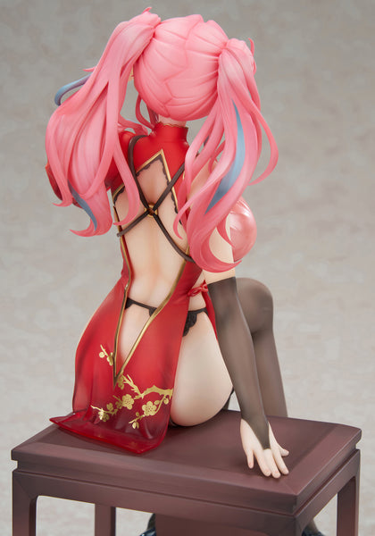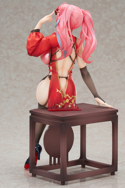 Apex brings us an amazing figure of the heavy cruiser Bremerton from the popular app game "Azur Lane" wearing a Chinese-style dress! The barely-there dress does little to conceal Bremerton's spectacular curves; golden patterns on the dress add a touch of elegance, and her heart-shaped sunglasses and hair ornament give the outfit an unexpected casual touch that's very refreshing! Her garter belt and the lace at the tops of her sheer stockings are sculpted with great care; the stylish bench she's sitting on is included too. As a special bonus, the first run of this figure will include a badge with the original illustration that inspired this figure (this item is only included with the first run of this figure; if yours does not include this item, it was not part of the first run)! Display her together with Apex's figure of Formidable for even more impact! Order Bremerton for your own collection today, Commander!