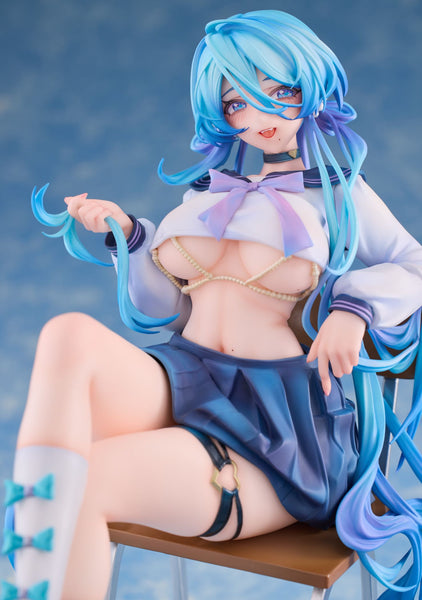 Hobby Sakura brings us a new figure of Circle Activities Yuzuki Ayasakura! Seated on a school chair, she's posing in a way to show off her unique version of a school uniform, with bow-bedecked socks and a very, very short blouse! Her long blue hair is worn in low twin tails, and she's got a smile on her face that could mean many things! This deluxe edition includes a wall tapestry of the original illustration that inspired this figure! Order her for your own collection today!