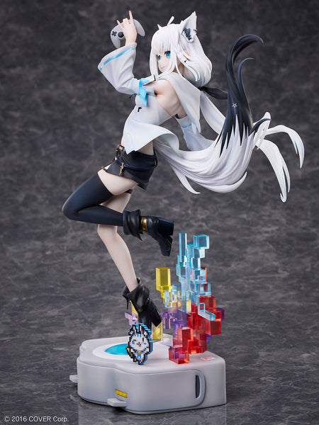 Design COCO brings us a new figure of Shirakami Fubuki from "hololive production," based on the jacket illustration of the original song "We are GAMERS!!!!"! This figure made its debut at "hololive SUPER EXPO 2025" as a life-size version, and now she can join your own collection in 1/7-scale! Her white hair is made of clear material that's partially painted, giving it a sense of transparency; the details of her outfit are carefully reproduced, and her fox ears and fox tail are sculpted to capture every nuance. You'll love her gentle smile, and her base is modeled after a game console, complete with a Sukonbu! Order her for your own collection today!