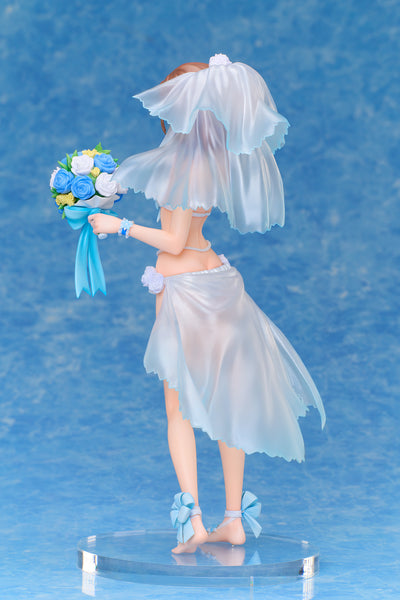 Mikoto Misaka from the TV anime "A Certain Scientific Railgun T" is now a lovely figure from A Dimension in her gorgeous wedding swimsuit! Her pure white swimsuit, dazzling smile filled with sheer happiness, and smooth bare skin are all incredibly cute;the ruffles of the swimsuit have been sculpted with great care, and the transparency of her pareo and veil are expressed with clear materials. Even her bouquet is carefully detailed! Her base is included. Order this beautiful bride for your own collection today!
