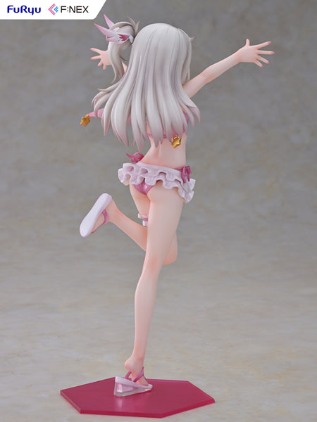 Illyasviel von Einzbern from the TV anime "Fate/kaleid liner PRISMA ILLYA 2wei!" is now a delightful figure from FuRyu's high-quality figure brand F:NEX! The design of her swimsuit was inspired by a magical girl's costume, with its soft frills and wrinkles carefully expressed; she gives you her brightest smile and a wink that'll warm your heart! You'll love the tiny pink tattoo on her stomach, too. A base is included. Order her for your own collection today!