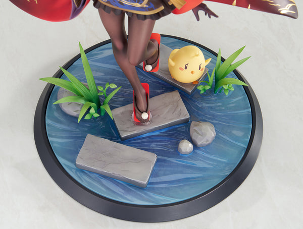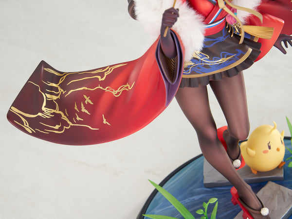 Noshiro from the popular app game "Azur Lane" by Yostar arrives in Apex's figure lineup wearing a gorgeous outfit and holding a sweet candy apple, as seen in her "Uncharted Festival Grounds?" skin! She's avoiding the crowded main thoroughfare of the festival, walking lightly on the stone pavers in the shallow waters to meet you! Her hair and the long sleeves of her jacket flutter on the light breeze, and every detail of her outfit is precisely reproduced, down to the delicate wrinkling in her gloves and the golden decorative patterns. One of the Manjuu mascots is along for the fun too, and her base is included. As a special bonus included only with the first run, you'll also receive a shikishi of the illustration that inspired this figure! (This item is only included with the fist run of this figure. If yours does not include it, it was not part of the first run.) Order her for your own collection today, Commander!