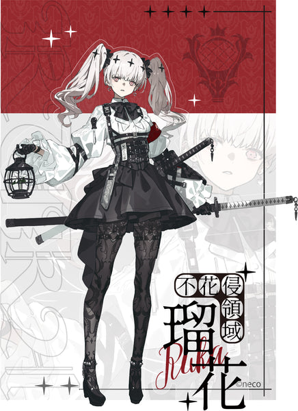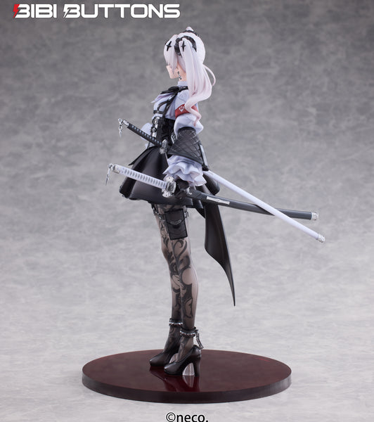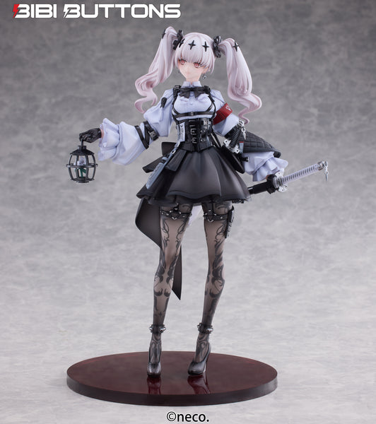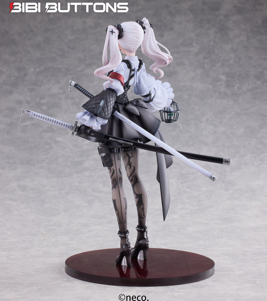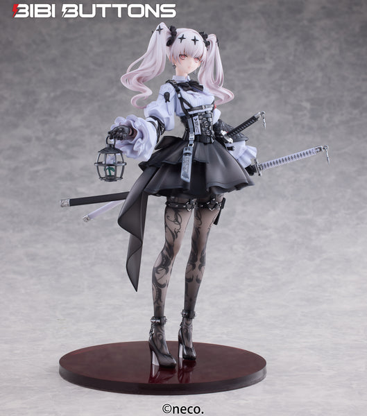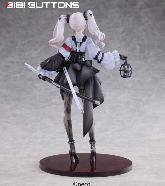 Ruka from "Fukashin Ryouiki" is now a gorgeous figure from Bibi Buttons! All the details of her outfit,, such as the buckling on her corset, the pattern on the hilts of her swords, and the delicate pattern on her stockings, is carefully reproduced; she holds a lantern with two white flowers in it out to you. This deluxe edition comes with an acrylic stand, too! Her base is also included. Order her for your own collection today!