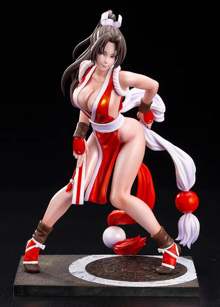 Mai Shiranui, a member of the female fighter team from "King of Fighters '98," hailed as the pinnacle of the "King of Fighters" fighting game series, returns to Kotobukiya's "Bishoujo" figure lineup with an even more luxurious paint job! While retaining the sculpt of the previously-released Bishoujo Mai Shiranui figure from 2022, the paint job on her outfit and the texture of her skin has been even further refined! The beautiful lines of her voluptuous figure are perfectly recreated, including her healthy upper body, her exposed thighs, and the backs of her knees. Her base is inspired by the road under the overpass of the JAPAN STREET stage, which is based on Esaka in Osaka, Japan, where the SNK headquarters used to be! You'll love her cute, confident smile, too. Some minor assembly is required. Order her for your own collection today!