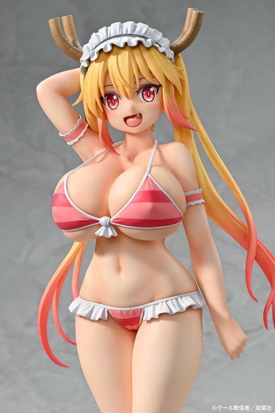 Tohru from the hugely popular "Miss Kobayashi's Dragon Maid" is now a figure from Q-Six! She's wearing a teeny bikini that shows off her healthy figure in the best way possible, and she has a big smile that shows off her cute pointy tooth! Her long twin tails flow softly behind her, with the pink gradient at their tips carefully painted; an interchangeable face with a slightly suspicious expression is included too. She also comes with her base. Order her for your own collection today!