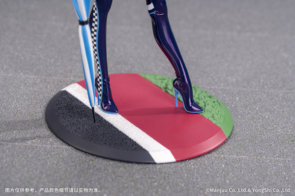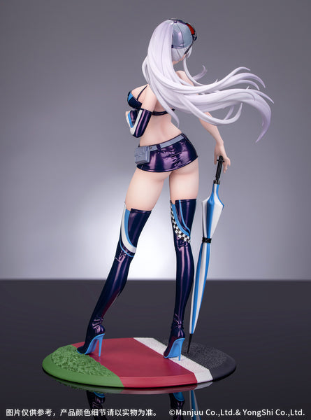 Enterprise from "Azur Lane" takes to trackside in this new "Gift+" figure from Myethos, showcasing her "Wind Catcher" skin! In her glossy black race-queen outfit and mile-high boots, she's the perfect picture of elegance! She holds the handle of a long umbrella in one hand as the cars roar by; the wind tosses her long silvery ponytail behind her, creating a dynamic effect. Her outfit is finished with pearlescent paint, and the zipper on the front is amazingly detailed; her boots have been carefully sculpted to capture all the delicate wrinkling. Her special base is included too. Order her for your own collection today, Commander!