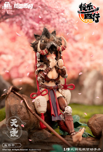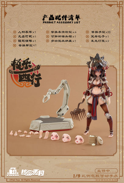 Tian Peng helps Fish Toys launch their new original 1/9-scale action figure series, "Ji Le Xi Hang," based on "Journey to the West"! Tian Peng is a mischievous and gluttonous girl, with boarskin headgear to give her a wild atmosphere! Her lanterns are equipped with LEDs so they can light up, and she comes with plenty of interchangeable faces and hands, too. Order her for your own collection today!