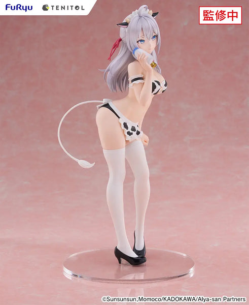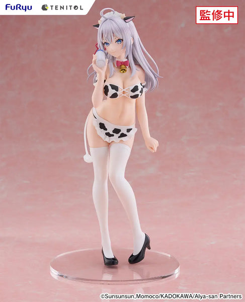 Alya from the TV anime "Alya Sometimes Hides Her Feelings in Russian" is now available in the "Tenitol Tall" figure lineup from FuRyu, wearing a bikini with a cow motif! She looks a little bit bashful, holding a milk bottle in one hand with an uncertain smile on her face; the bikini shows off her curves, and its cow pattern is very cute, as are the cow ears and horns on her headdress! Her base is included. Better mooooove fast and order her for your own collection today!
