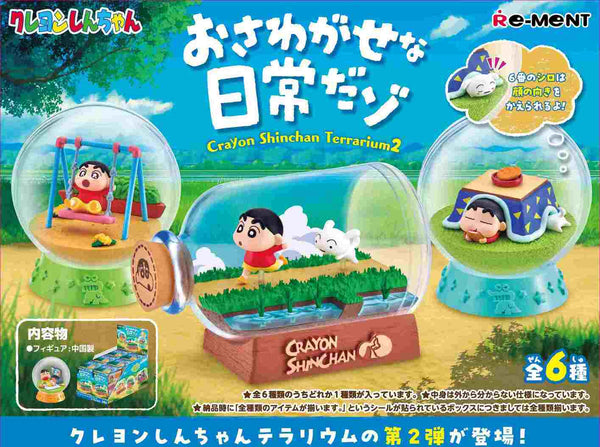 Re-Ment brings us their second lineup of terrarium-style scenes from the world of "Crayon Shin-chan"! Shin-chan enjoys life the only way he knows how -- head-first! -- in these cute items; there are six different vignettes to collect and trade, and you'll get one of each. Place your order today1
