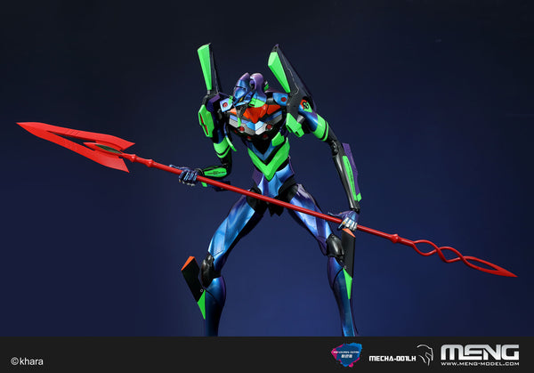 The newest version of Meng's "Evangelion" Type-01 model kit uses iridescent color painting technology, with paint that dynamically changes color depending on the angle, giving it a strong visual impact! The flow of light creates a multi-colored gradation on the mech's surface, allowing you to enjoy its sophisticated beauty even more than ever! The kit is made with multi-color runners for easy assembly, with the runners using an undergate system. Specially designed LED light-up parts are included, so the eyes can light up -- the lighting is turned on and off by attaching and detaching the entry plug. It'll be highly posable after assembly, too, and its assertive 47cm size will make it a standout on your shelf! Decals and metal stickers are included, The progressive knife, pallet knife, Gatling gun and Cassius spear are included, as are interchangeable hands! Order this amazing model kit for your own collection today!