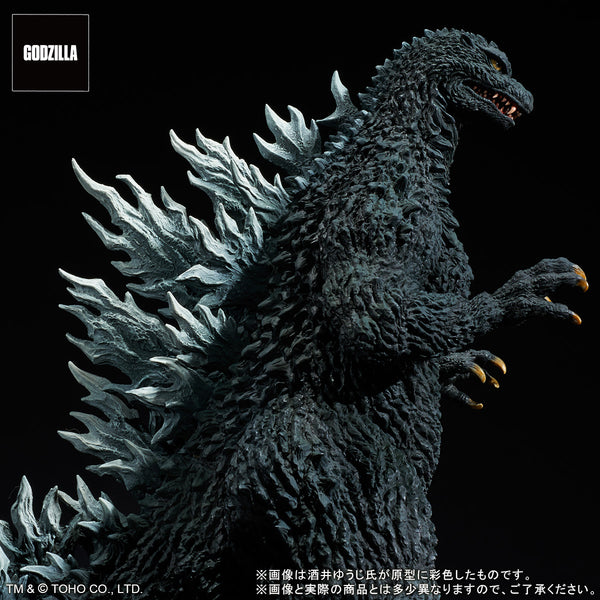 Here comes the Big G, Godzilla himself, as seen in 2002's "Godzilla Against Mechagodzilla"! He's returning to X Plus's "Toho 30cm Series Yuji Sakai Modeling Collection" lineup for the first time since 2019! As the title says, he was sculpted by the master of monster modeling, Yuji Sakai, so you know he'll be awesomely detailed and will look like he could stomp off your collection shelf and go on a rampage at any moment! This figure recreates the scene at the beginning of the film, with Godzilla battling against the Japan Self-Defense Forces during a raging storm. With his tail raised high in defiance, Godzilla is ready to take on anyone! Order this beautiful beast for your own collection today!